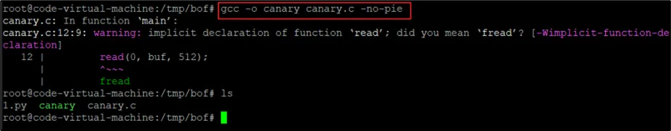 해당 코드를 컴파일 시 pie옵션을 제거한 상태로 컴파일을 진행한다.